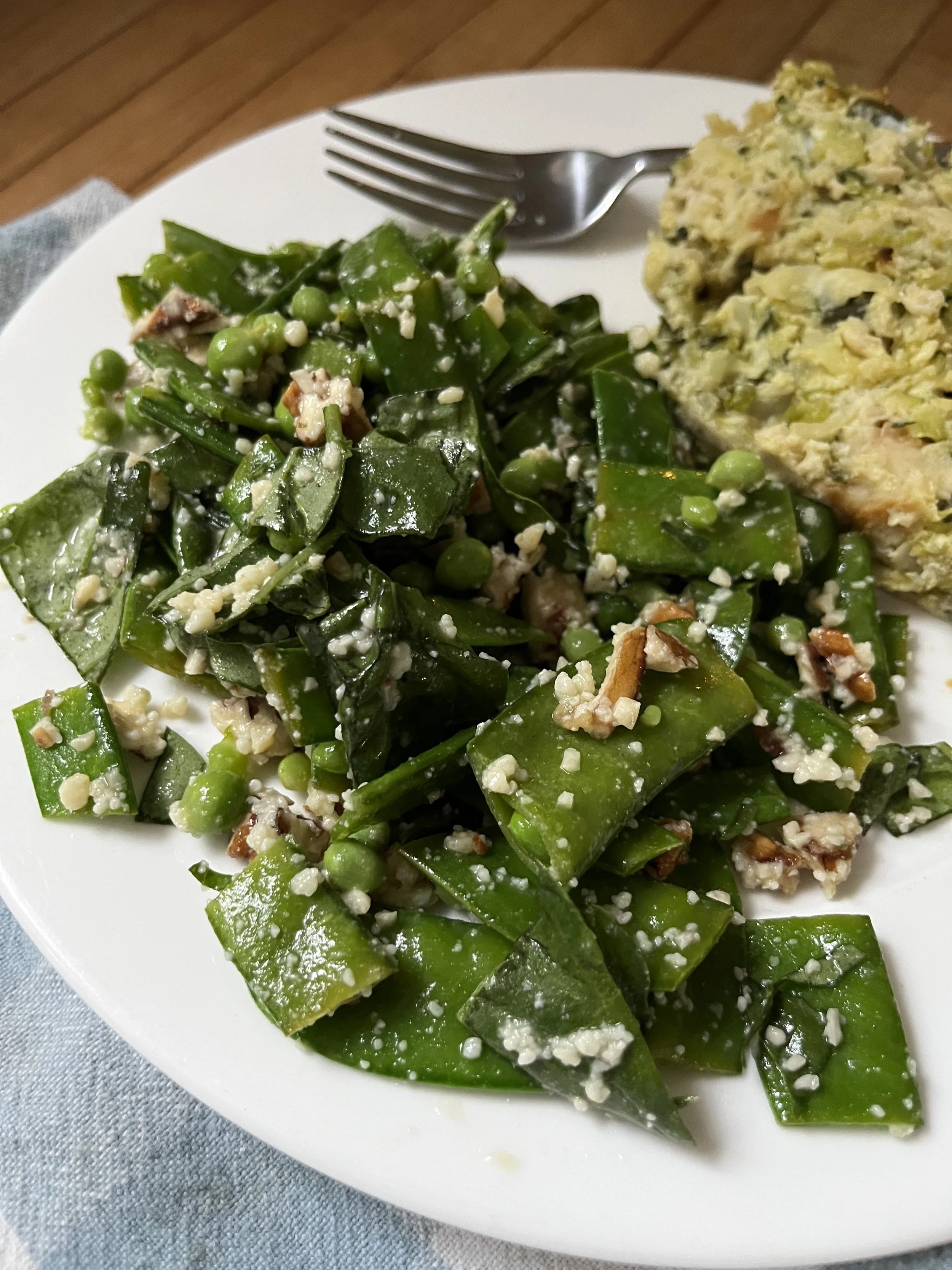 This easy, light salad is perfect for your summer pot luck. It is quick and easy to make ahead and it gets better over time. This is the kind of salad that stays crunchy and fresh for hours and also keeps well overnight in the fridge making it perfect for weekly meal prep. It is bright, salty and satisfying. If you can’t find sugar snap peas, you can substitute frozen peas or fresh peas instead. Or a combination of sugar snap peas and shelled peas is also delicious.